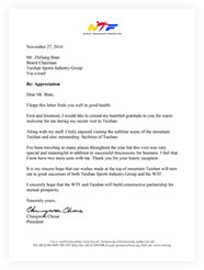 世界跆拳道联合会主席赵正源感谢信